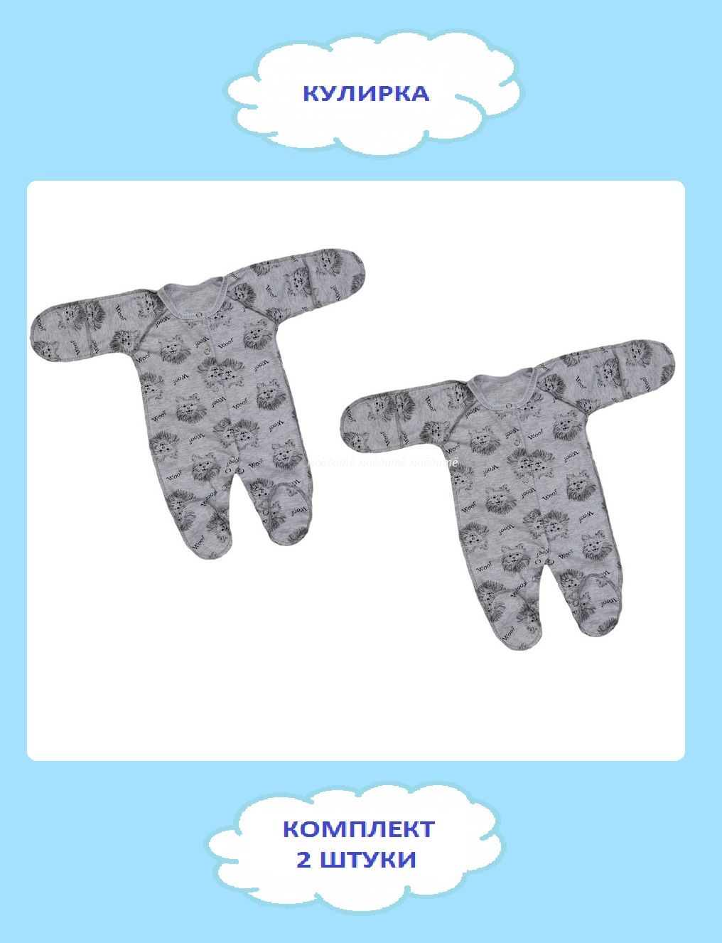 "МоёДитё" комбинезон со швами наружу "Гардения" КК007 "Собачки" серый в Курске